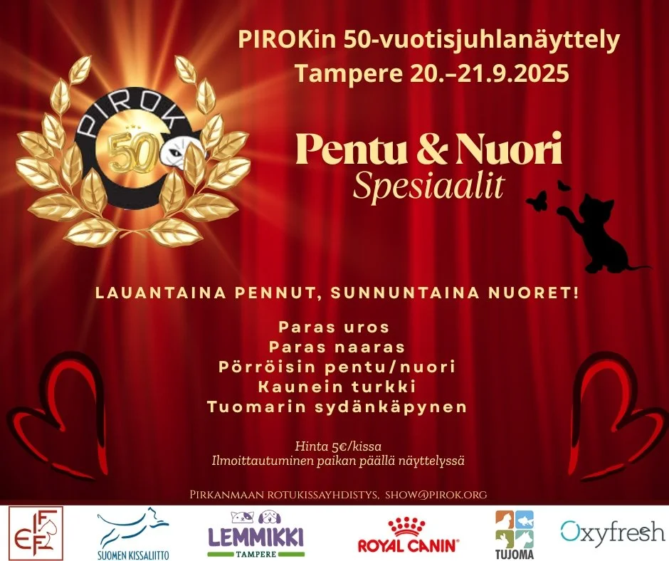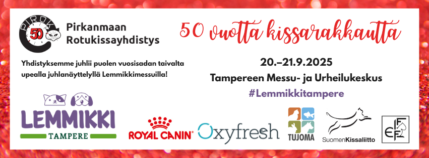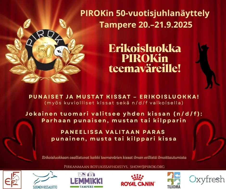 Tervetuloa juhlanäyttelyymme Lemmikkimessuille – luvassa upeita kissoja ja juhlatunnelmaa punamustin sävyin!