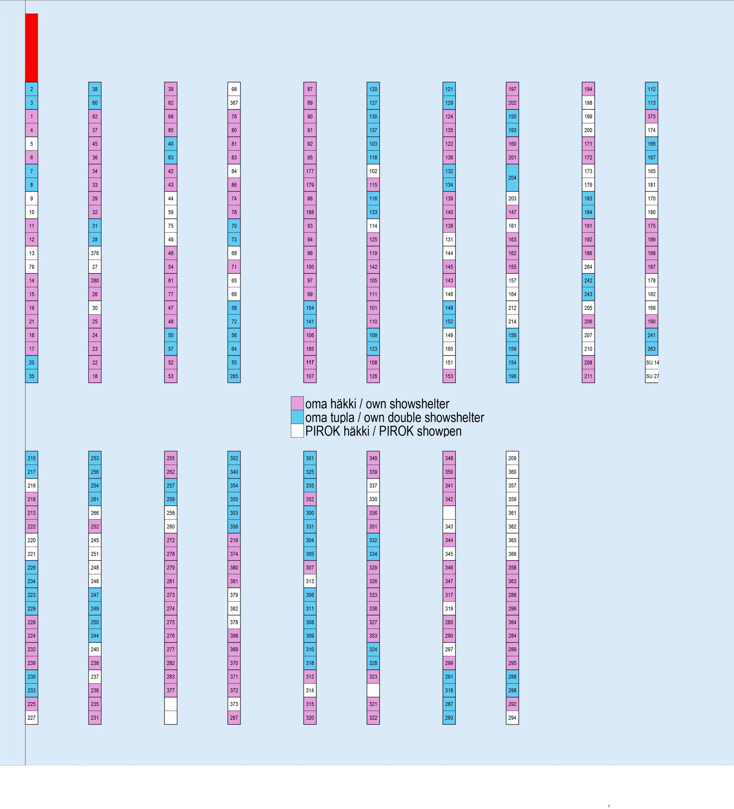 Häkkipaikat ovat LAUANTAINA numeroitu. Kartta julkaistaan ennen näyttelyä yhdistyksen kotisivuilla sekä Facebook -sivuilla. Jos huomaat, että esim. kissasi numero puuttuu kartasta (VAIN LAUANTAIN NUMERO!!),ilmoita siitä viipymättä näyttelypäällikölle (nayttelypaallikko@pirok.org) Häkkitoiveita ei voida enää huomioida.Vain sunnuntaina näyttelyyn tulevat kissat saavat numerolapun aamulla ilmoittautumisen yhteydessä. Vain sunnuntaina arvosteluun osallistuvat kissat menevät vapaille häkkipaikoille, joita on reilusti!